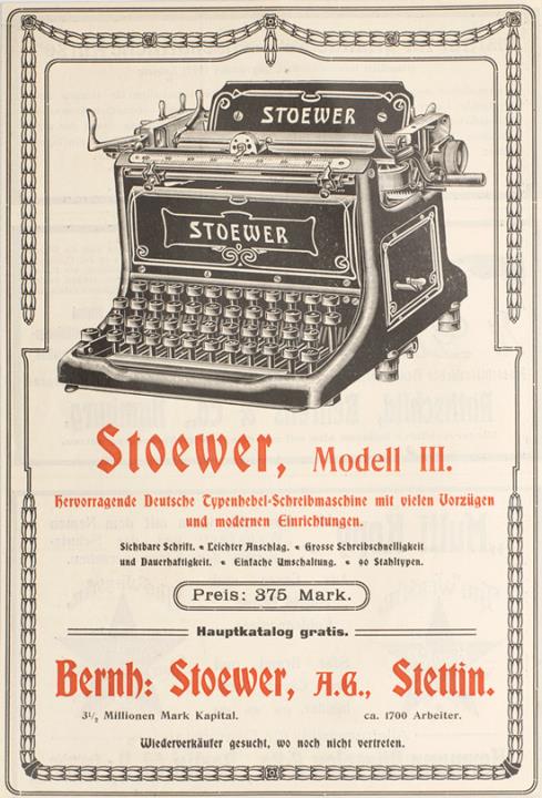 Stoewer, Modell III. Hevorragender Deutsche Typenhebel-Schreibmaschine [...]