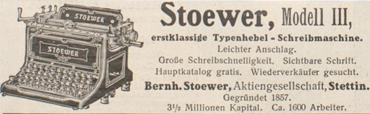 Werbeanzeige für Schreibmaschine Stoewer 3 monochrom