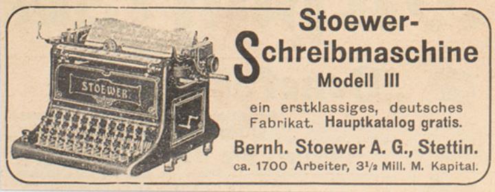 Werbeanzeige für Schreibmaschine Stoewer 3 monochrom