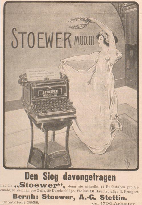 Werbeanzeige für Schreibmaschine Stoewer 3 monochrom