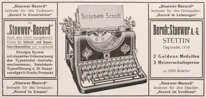 Werbeanzeige für Schreibmaschine Stoewer monochrom
