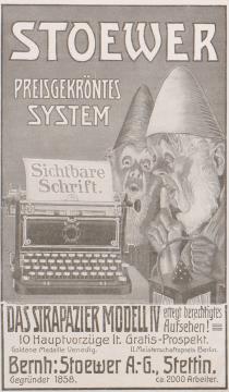 Werbeanzeige für Schreibmaschine Stoewer 4 monochrom