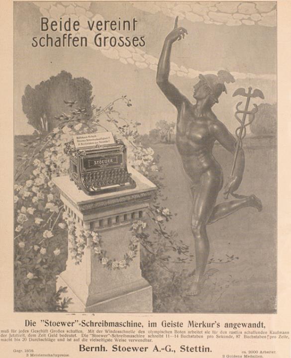 Werbeanzeige für Schreibmaschine Stoewer monochrom