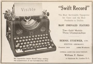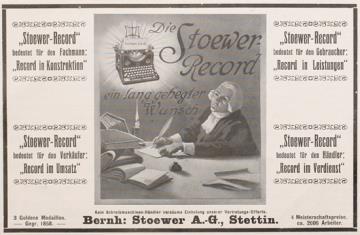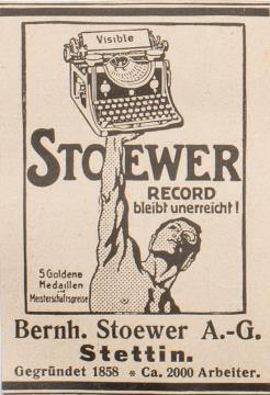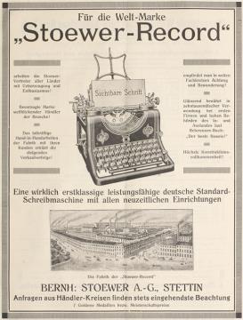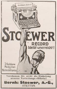 Werbeanzeige für Schreibmaschine Stoewer polychrom