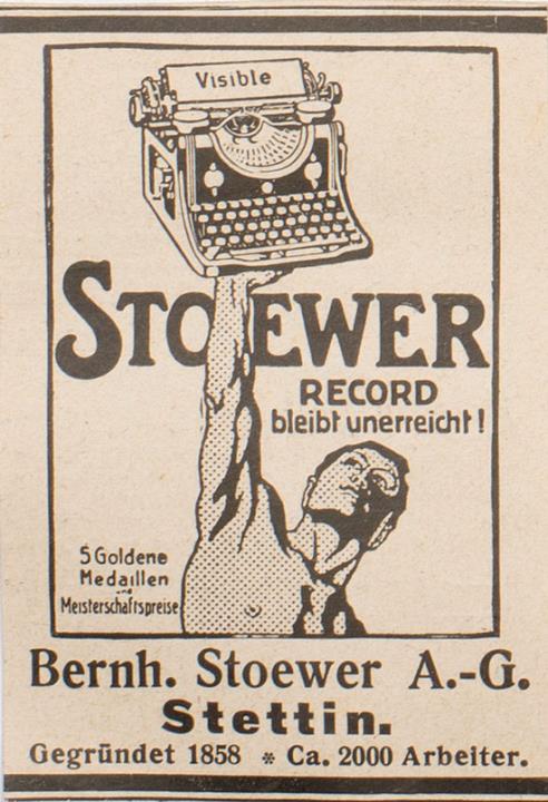 Werbeanzeige für Schreibmaschine Stoewer monochrom