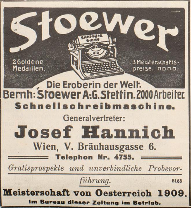 Werbeanzeige für Schreibmaschine, Nähmaschine und Fahrrad Stoewer monochrom, zehn Exemplare
