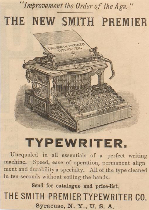 Werbeanzeige für Schreibmaschine Smith Premier monochrom