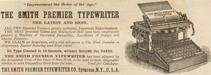 Werbeanzeige für Schreibmaschine Smith Premier monochrom