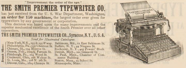 Werbeanzeige für Schreibmaschine Smith Premier monochrom, drei Exemplare