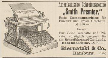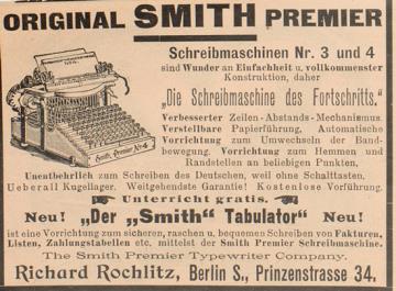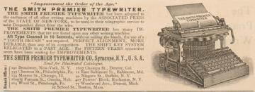 Werbeanzeige für Schreibmaschine Smith Premier monochrom