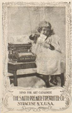 Next to literature on the history of technology, of the typewriter and the office, the Archive holds patent letters, textbooks and instruction manuals as well as historical postcards, letters, photographs and various kinds of advertising (leaflets and brochures, advertising stamps, newspaper ads, posters and signs, promotional gifts).