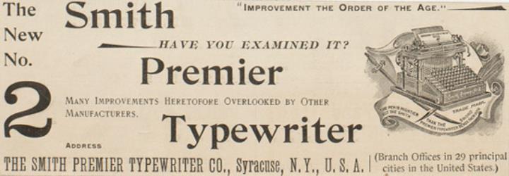 Werbeanzeige für Schreibmaschine Smith Premier monochrom