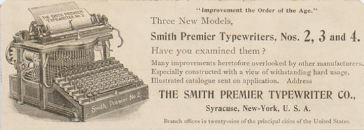 Werbeanzeige für Schreibmaschine Smith Premier monochrom