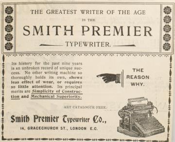 Werbeanzeige für Schreibmaschine Smith Premier monochrom
