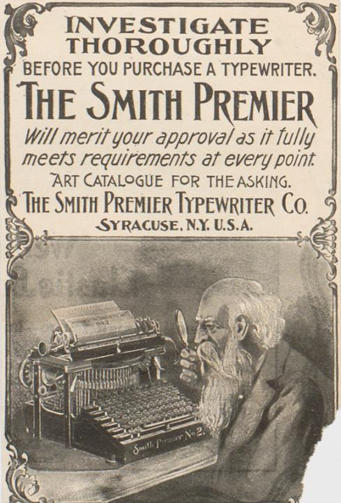 Werbeanzeige für Schreibmaschine Smith Premier monochrom