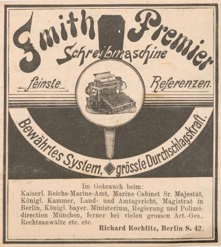 Werbeanzeige für Schreibmaschine Smith Premier monochrom
