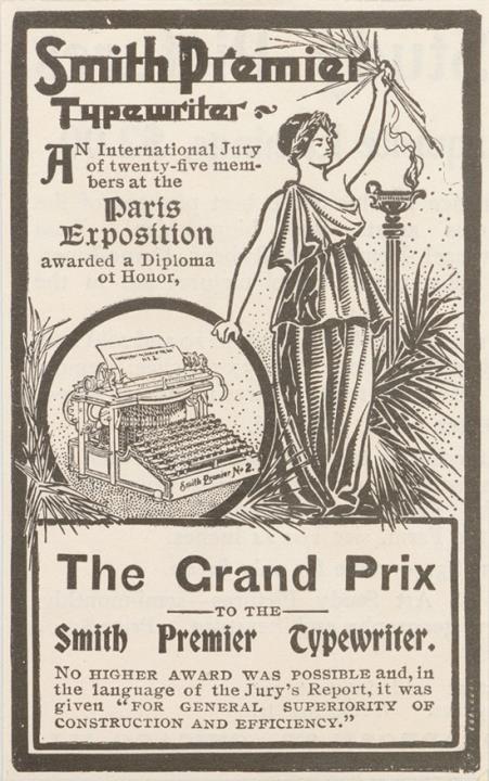 Werbeanzeige für Schreibmaschine Smith Premier monochrom
