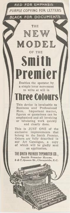 Werbeanzeige für Schreibmaschine Smith Premier monochrom