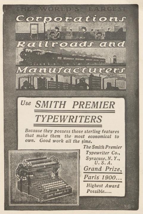Werbeanzeige für Schreibmaschine Smith Premier monochrom