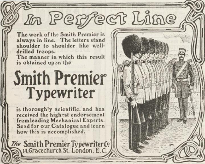 Werbeanzeige für Schreibmaschine Smith Premier monochrom
