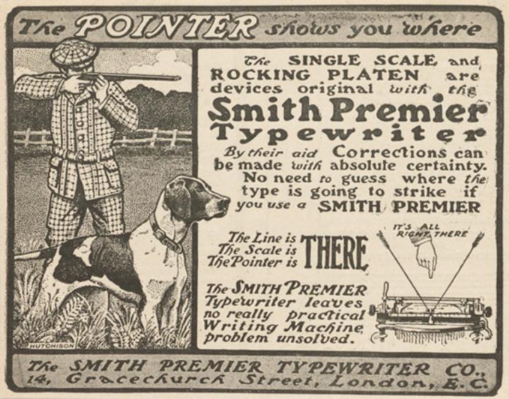 Werbeanzeige für Schreibmaschine Smith Premier monochrom