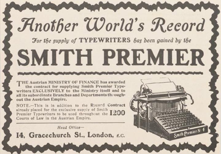 Werbeanzeige für Schreibmaschine Smith Premier monochrom