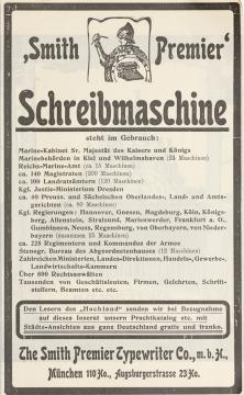 Werbeanzeige für Schreibmaschine Smith Premier monochrom