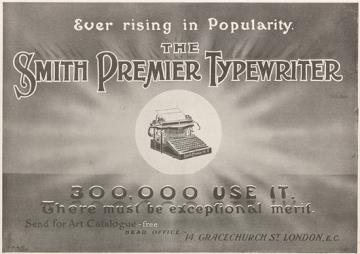 Werbeanzeige für Schreibmaschine Smith Premier; auf Karton geklebt monochrom