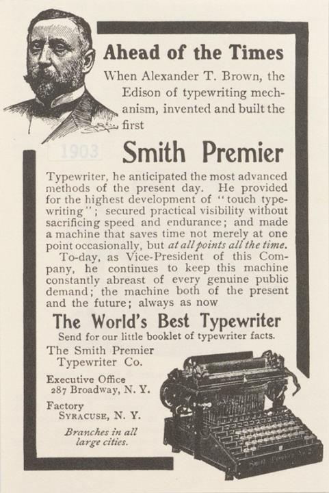 Werbeanzeige für Schreibmaschine Smith Premier monochrom