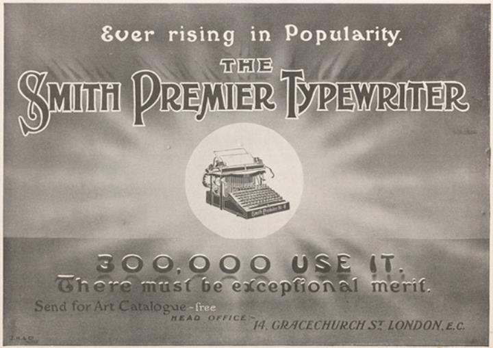 Werbeanzeige für Schreibmaschine Smith Premier monochrom
