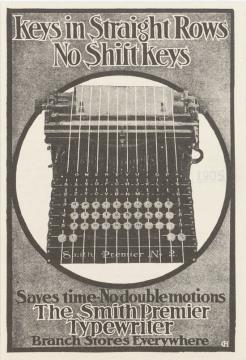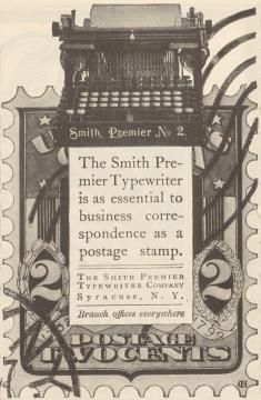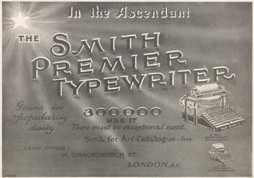 Werbeanzeige für Schreibmaschine Smith Premier; auf Karton geklebt monochrom