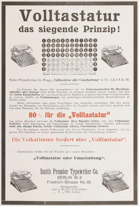 Volltastatur das siegende Prinzip Smith Premier Typewriter