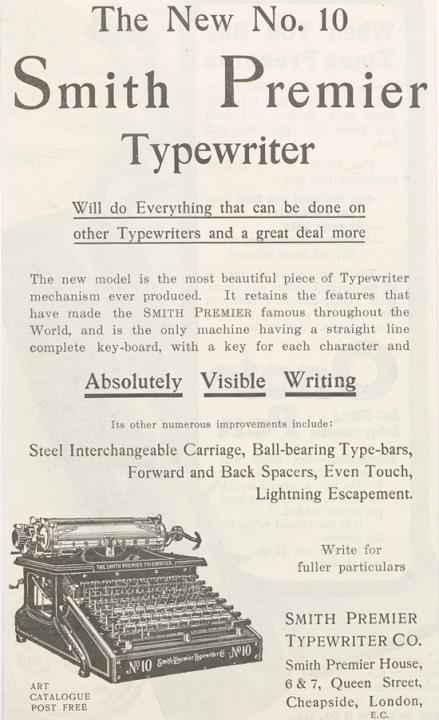Werbeanzeige für Schreibmaschine Smith Premier monochrom