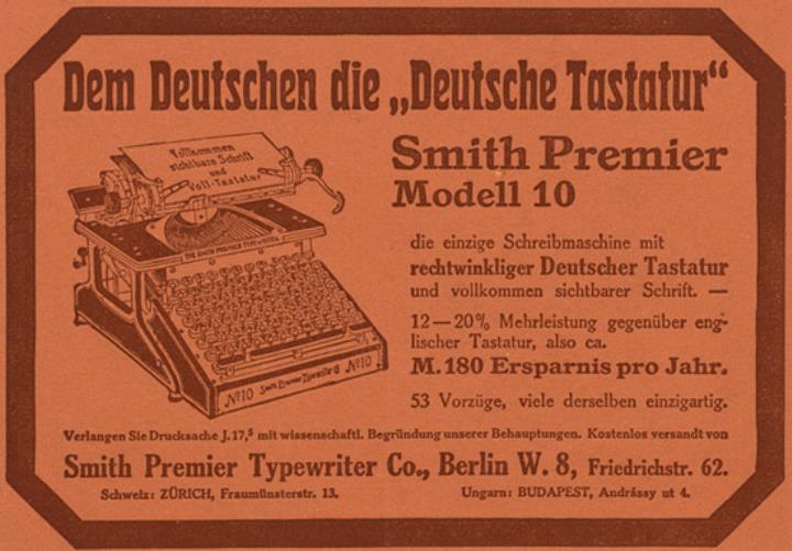 Dem Deutschen die Deutsche Tastatur Smith Premier Modell 10