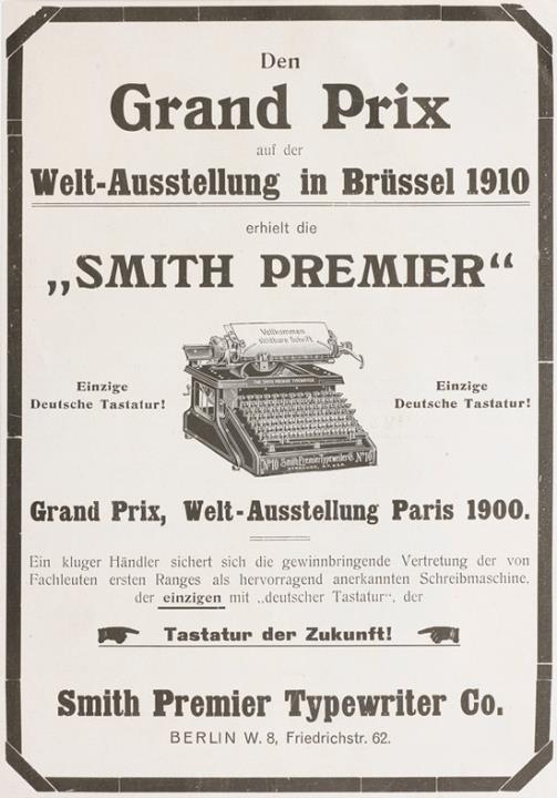 Werbeanzeige für Schreibmaschine Smith Premier monochrom