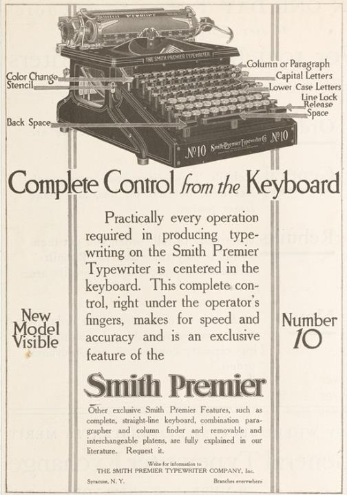 Werbeanzeige für Schreibmaschine Smith Premier monochrom