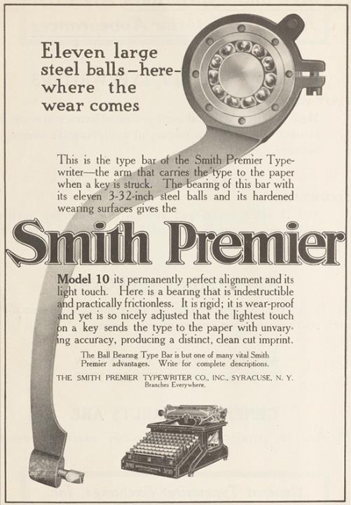 Werbeanzeige für Schreibmaschine Smith Premier monochrom