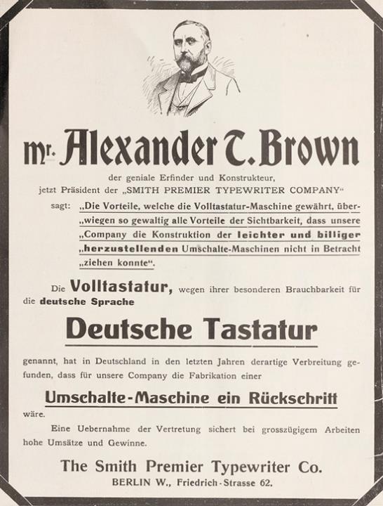 Werbeanzeige für Schreibmaschine Smith Premier monochrom