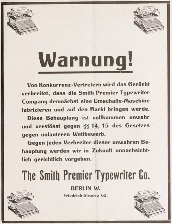 Warnung! Smith Premier Typewriter Co.