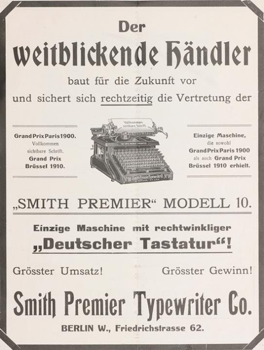 Werbeanzeige für Schreibmaschine Smith Premier monochrom