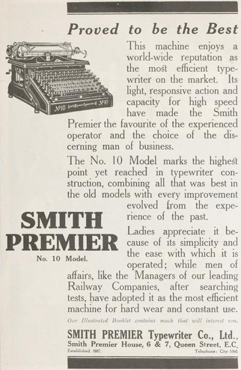 Werbeanzeige für Schreibmaschine Smith Premier monochrom