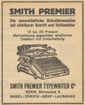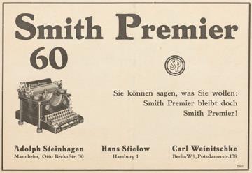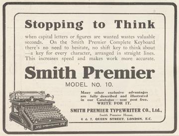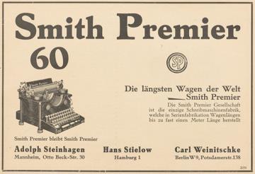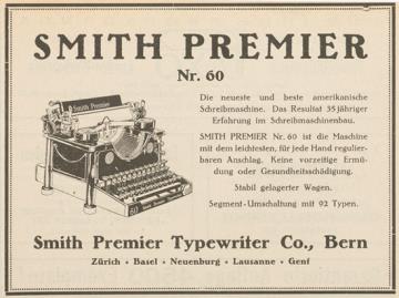 Werbeanzeige für Schreibmaschine Smith Premier monochrom