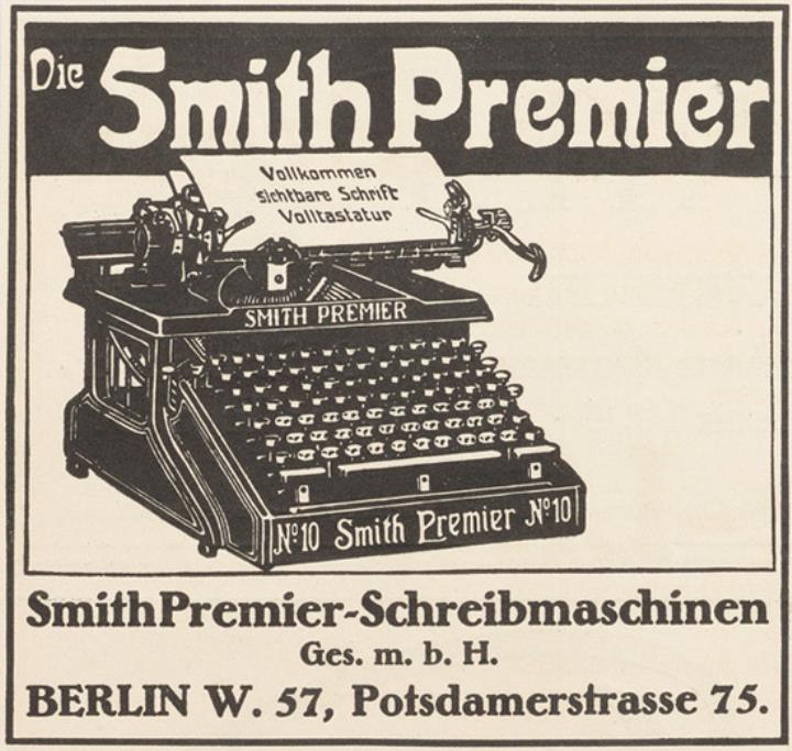 Werbeanzeige für Schreibmaschine Smith Premier monochrom
