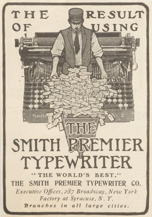 Werbeanzeige für Schreibmaschine Smith Premier monochrom
