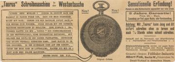 Werbeanzeige für Schreibmaschine Taurus Sensationelle Erfindung! monochrom