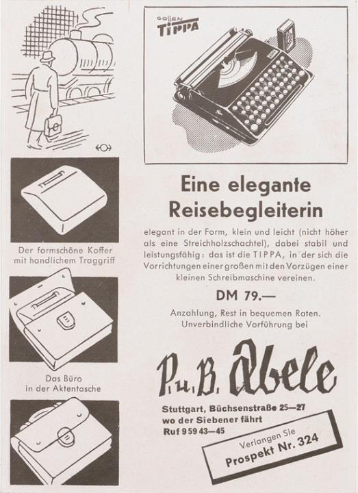 Werbeanzeige für Reiseschreibmaschine Gossen Tippa monochrom