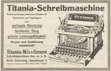 Titania-Schreibmaschine Erstes und einziges deutsches Fabrikat [...]