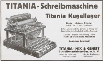 Titania-Schreibmaschine [...] Typenhebeln auf Kugellagern [...]