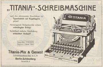 Werbeanzeige für Schreibmaschine Titania monochrom