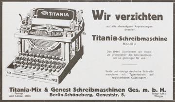 Wir verzichten [...] Titania-Schreibmaschine Modell 3